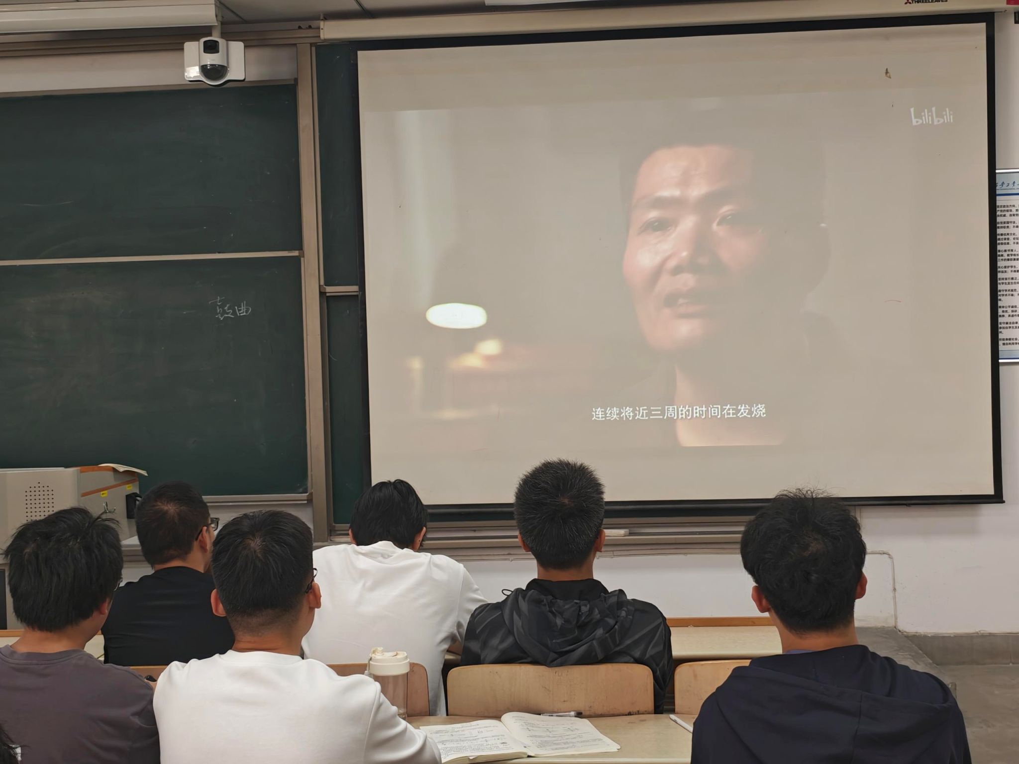 在教3-401教室组织全院困难生集中观看了爱国主义影片《长津湖》。旨为加强学生爱国主义教育,培育艰苦奋斗精神。