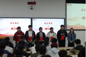 接着,李彬老师宣读本届团学干部名单。团学组织代表依次发言,原团委副书记刘炜、原青协主席孙鑫华、原新媒体运营部部长权佳欢分享工作和成长感悟,现任团委副书记刘思思表态将扛起责任、服务师生。