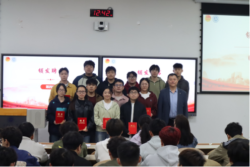 大会伊始,主持人介绍到场嘉宾,全体成员起立奏唱共青团团歌,激昂旋律拉开换届序幕。随后,秦亚敏老师宣读上届团学组织任职名单,大会进入聘书颁发环节:秦亚敏老师为上届新媒体中心、第二课堂、知心协会干部颁发聘书,李彬老师为上届团委、学生会干部颁发聘书,刘冬老师为上届科协、青协干部颁发聘书,贾建利老师为上届主席团成员颁发聘书。