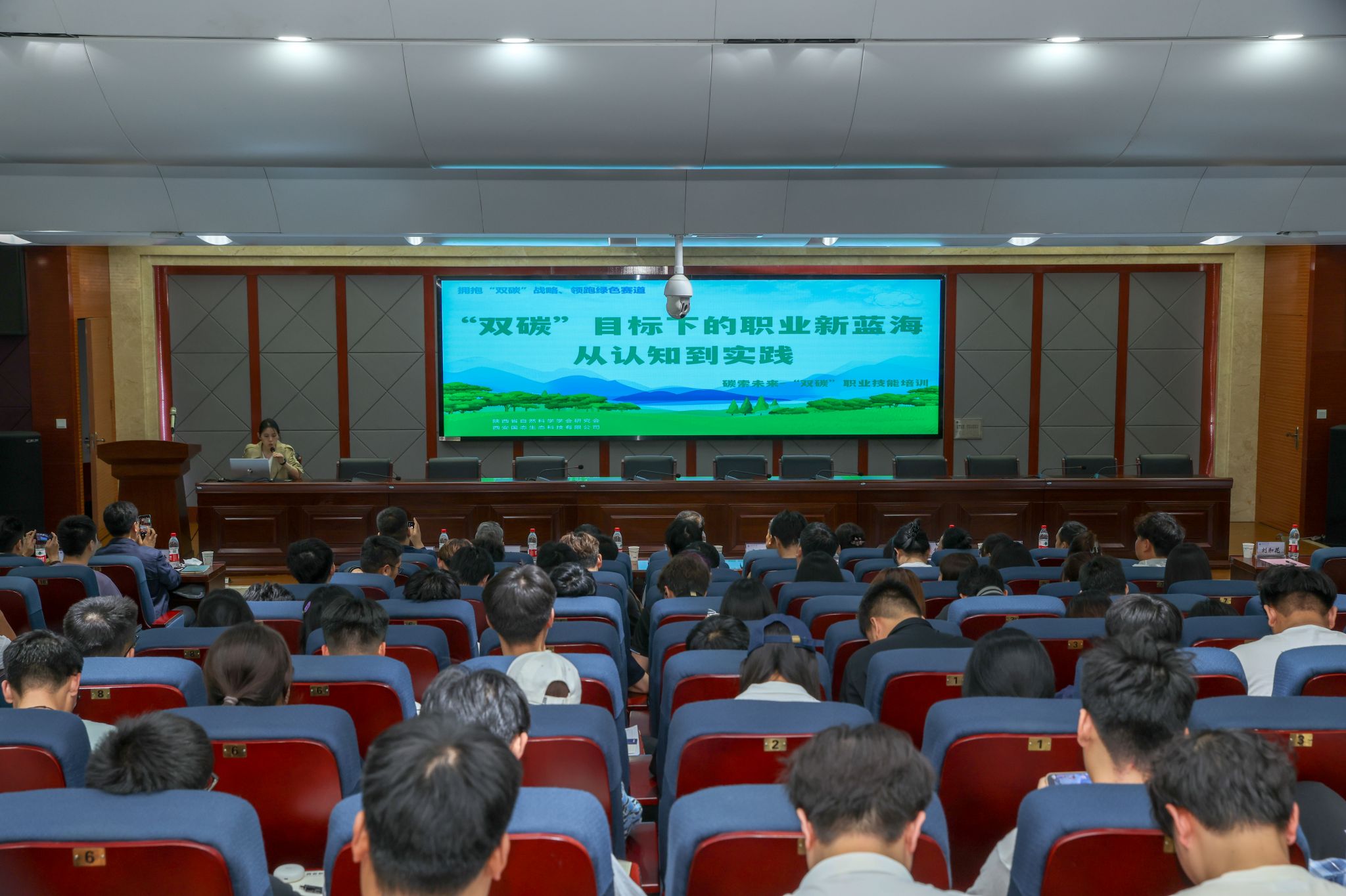 与西安国态生态科技有限公司联合承办的“碳索未来——‘双碳’职业技能培训”在教3-115报告厅顺利举行。陕西省自然科学学会研究会理事长党广录、副理事长兼秘书长易凤华,西安国态生态科技有限公司董事长余静,校党委副书记马福,成人导航